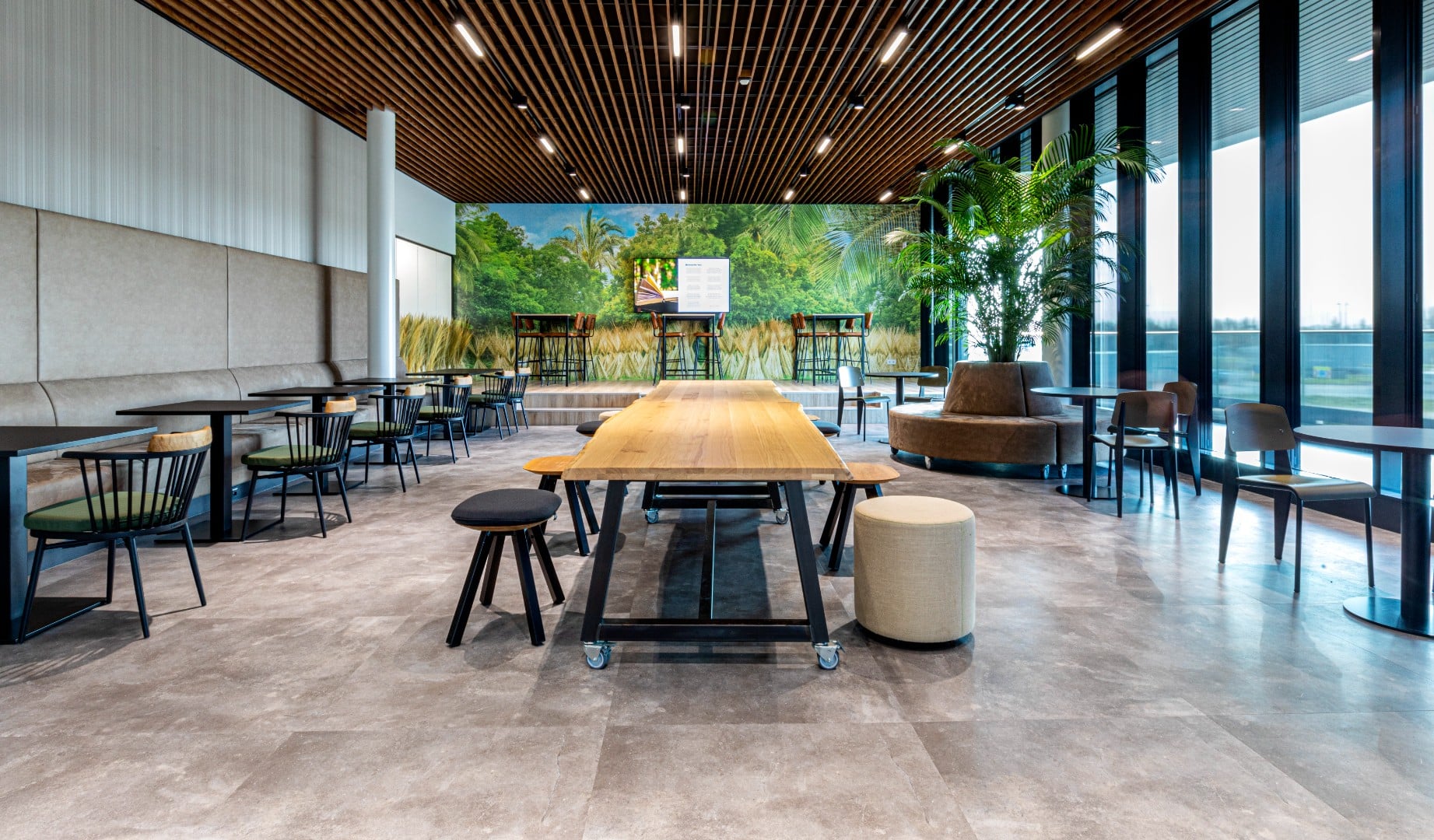 Vergadermeubilair, werkplekmeubilair, bedrijfsrestaurant, soft seating, vloerafwerking, computervloeren, gordijnen