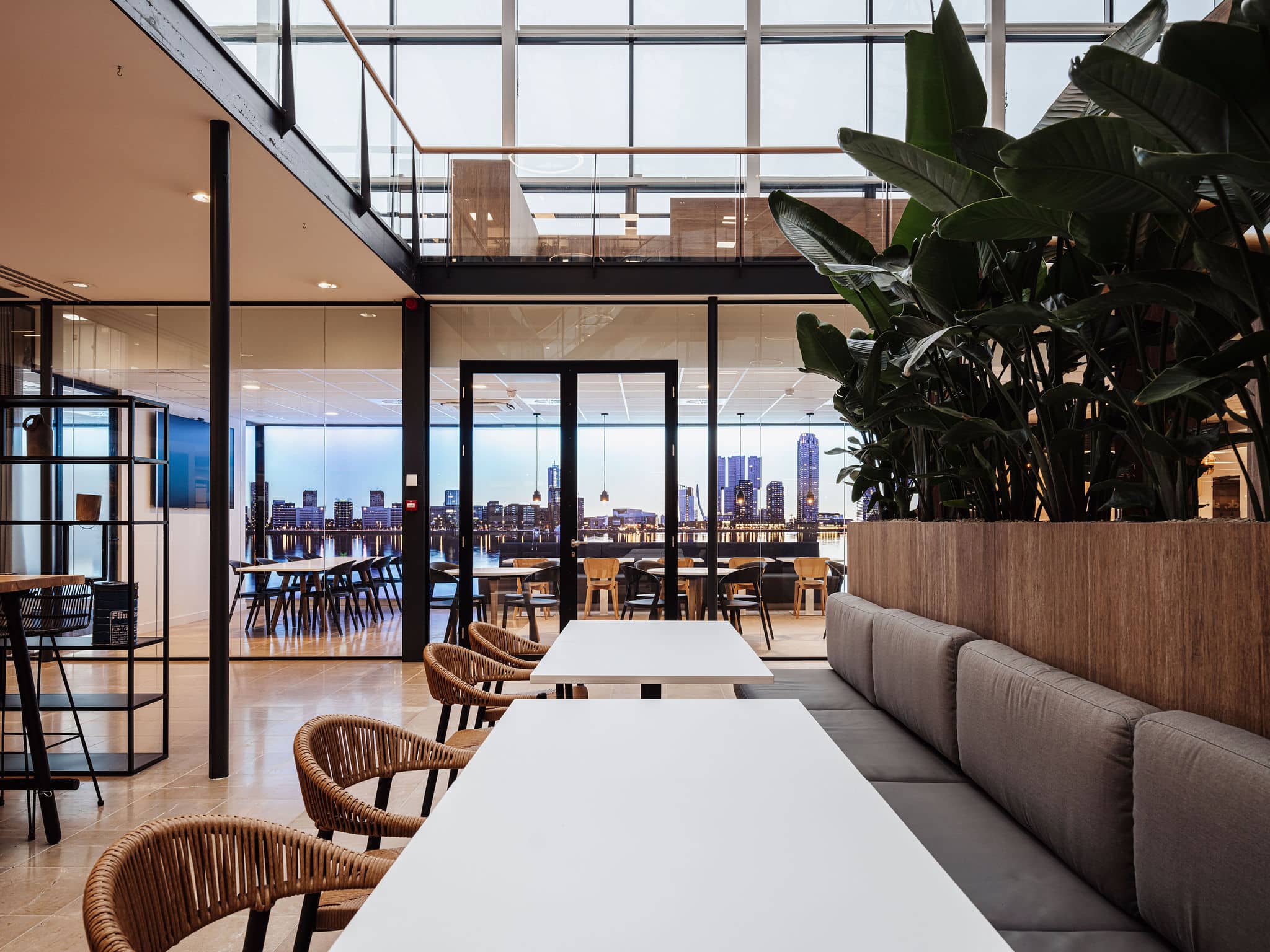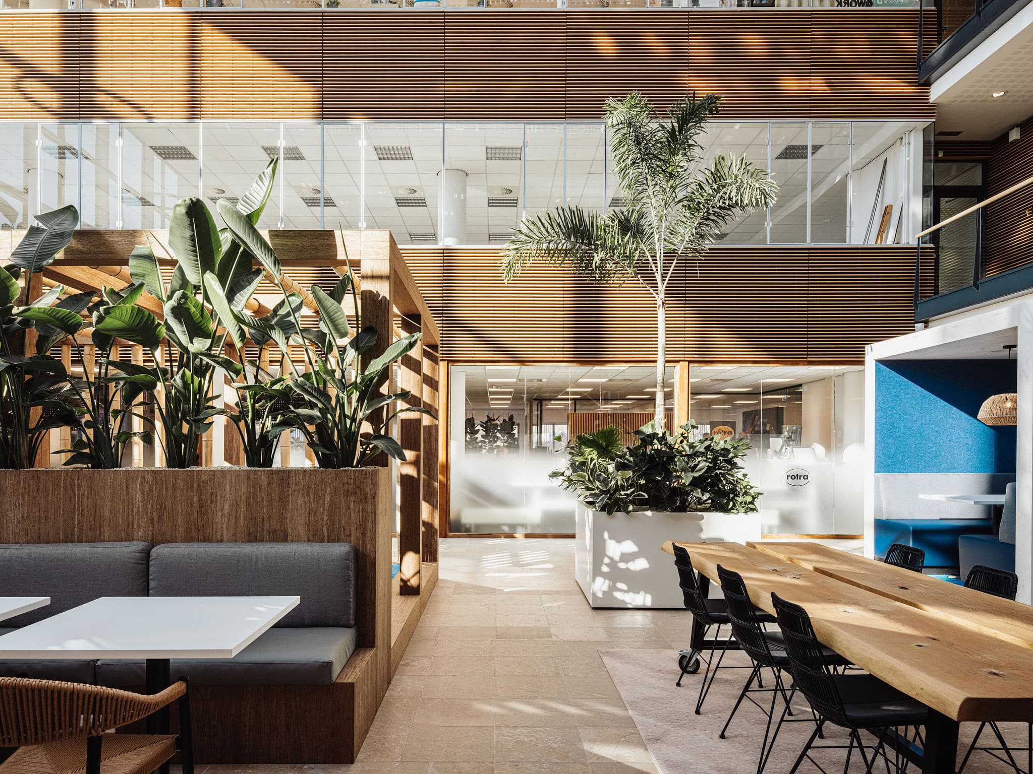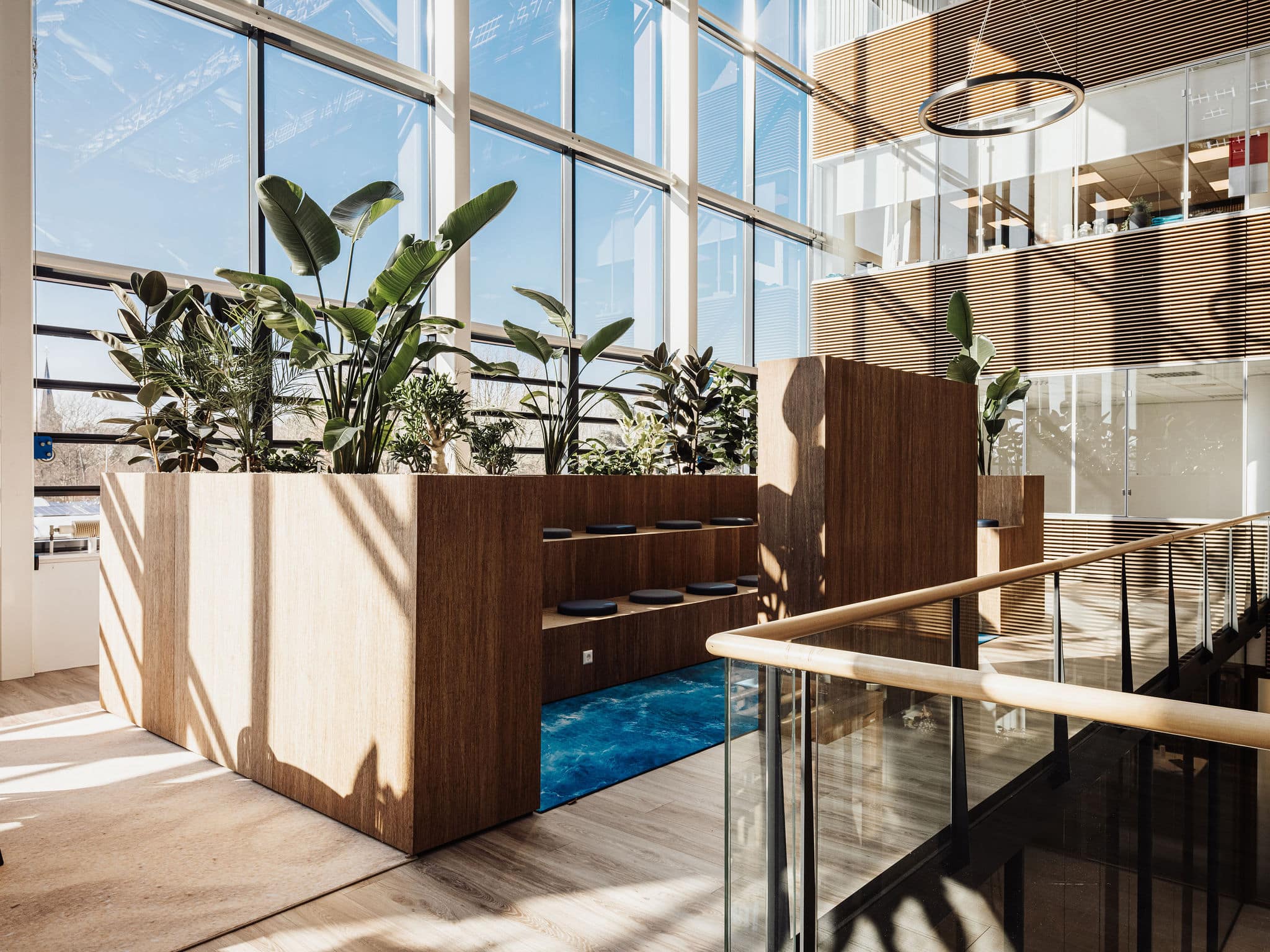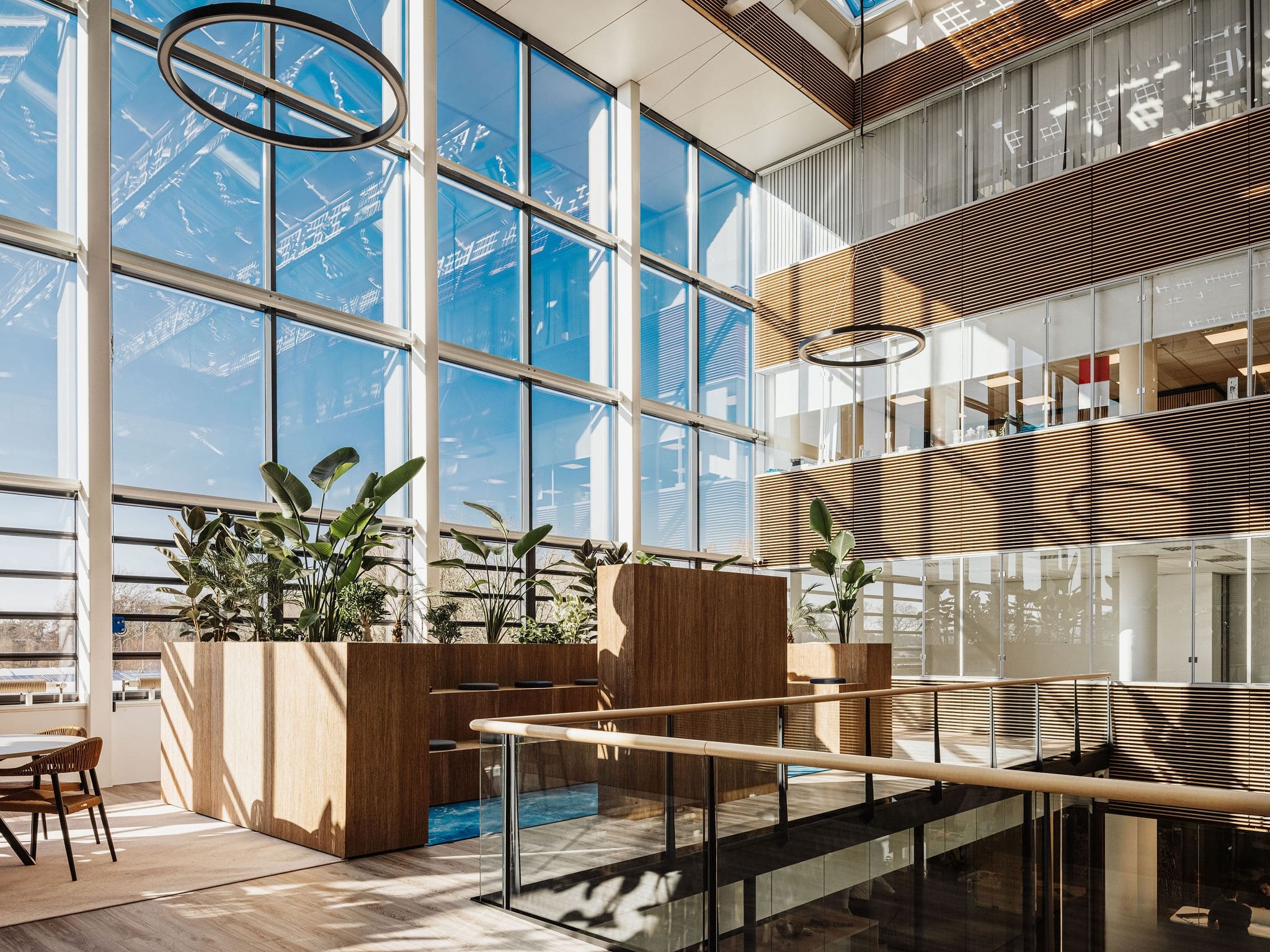 Voor Next Real Estate ontwierp en realiseerde Maasdam het atrium van het Poortugate-gebouw in Poortugaal. De ruimte is getransformeerd tot een centrale ontmoetingsplek voor huurders en bezoekers.