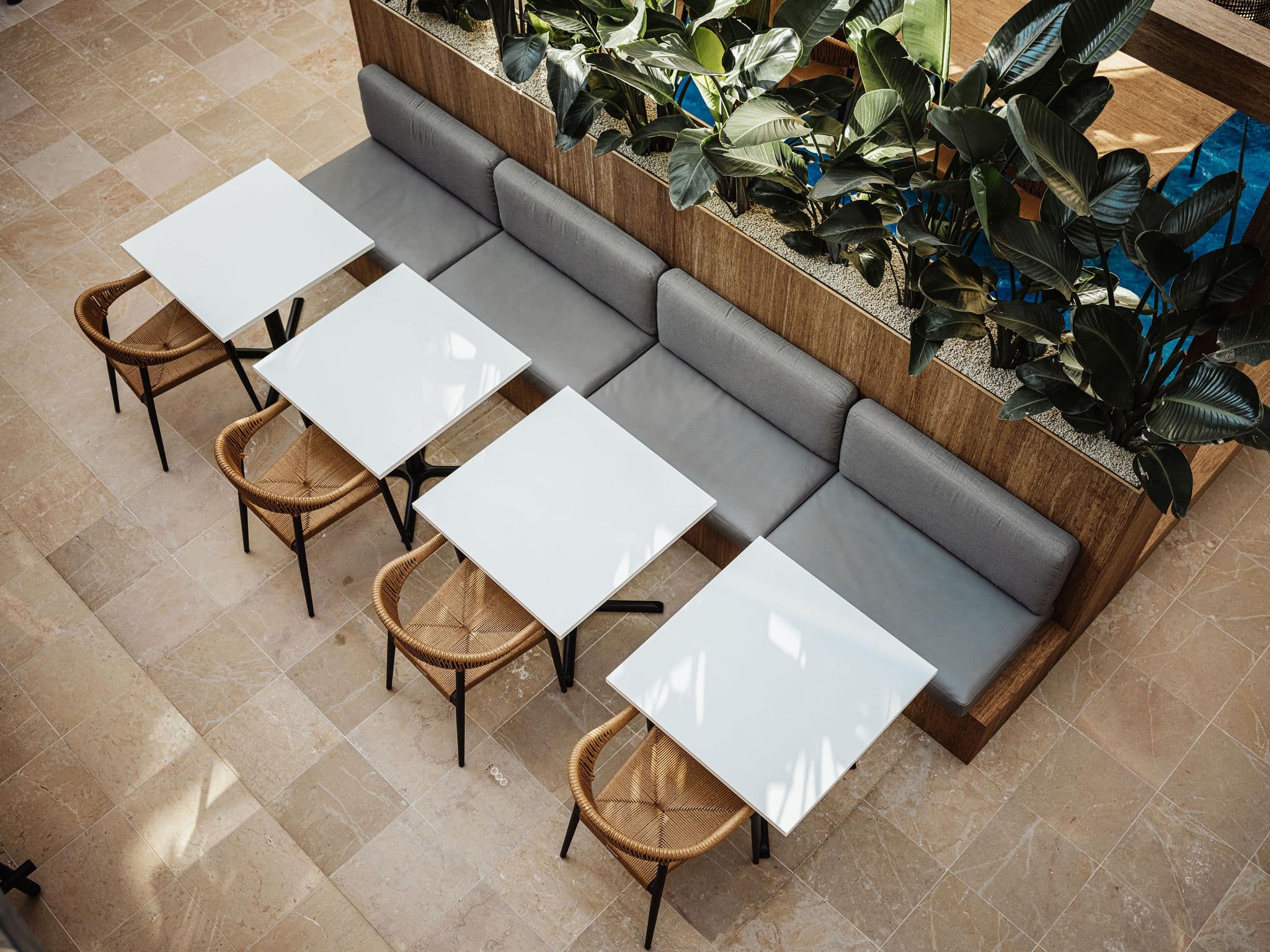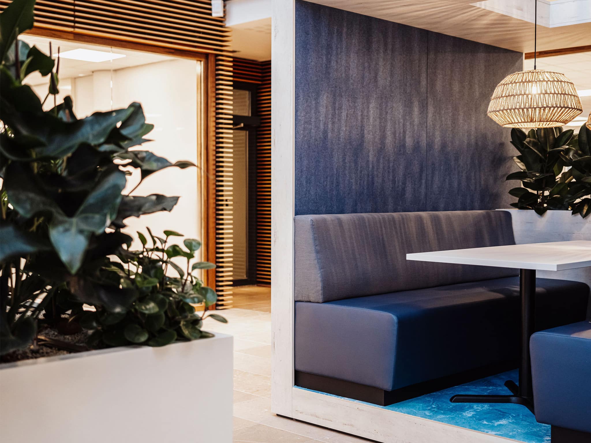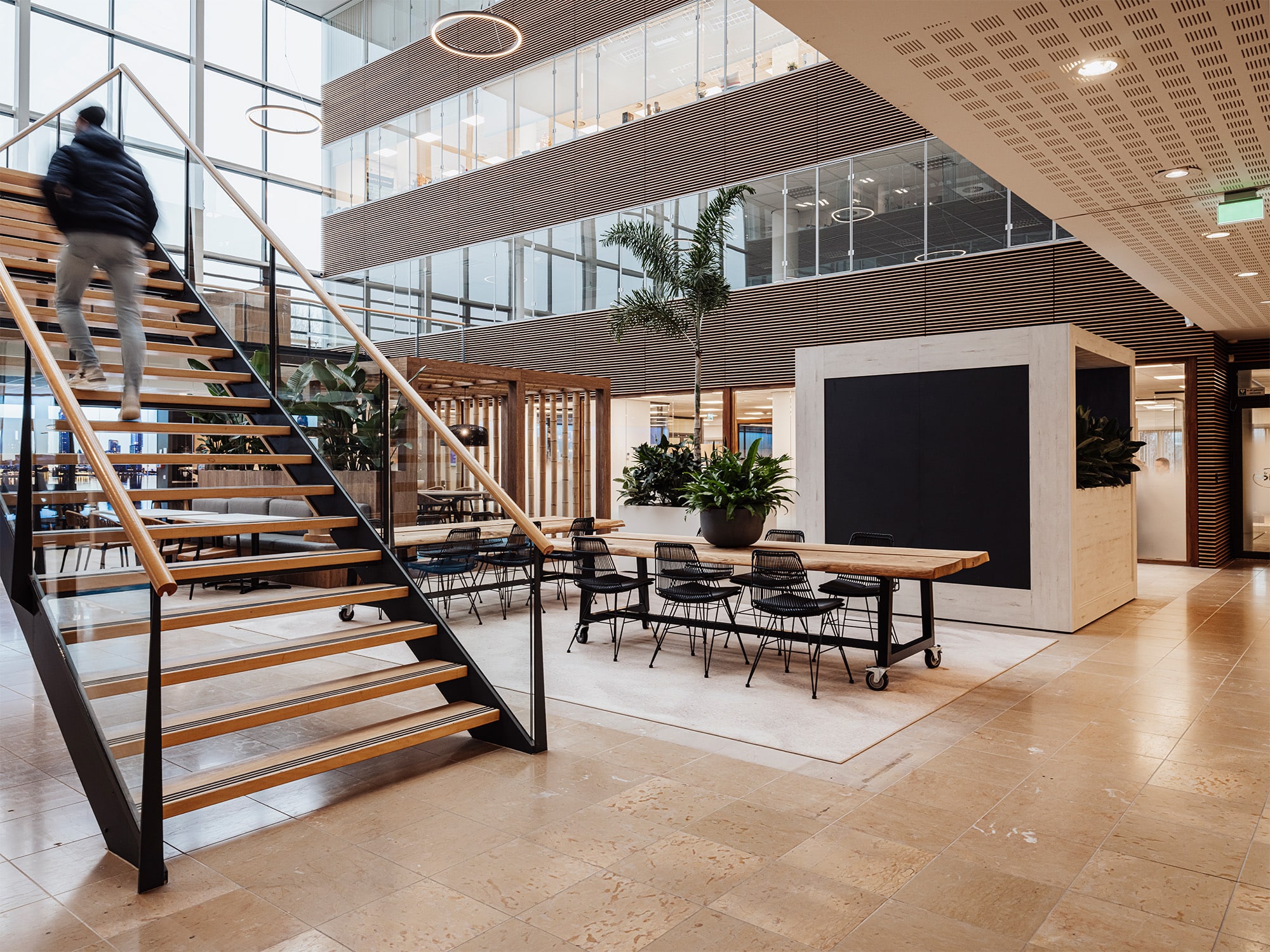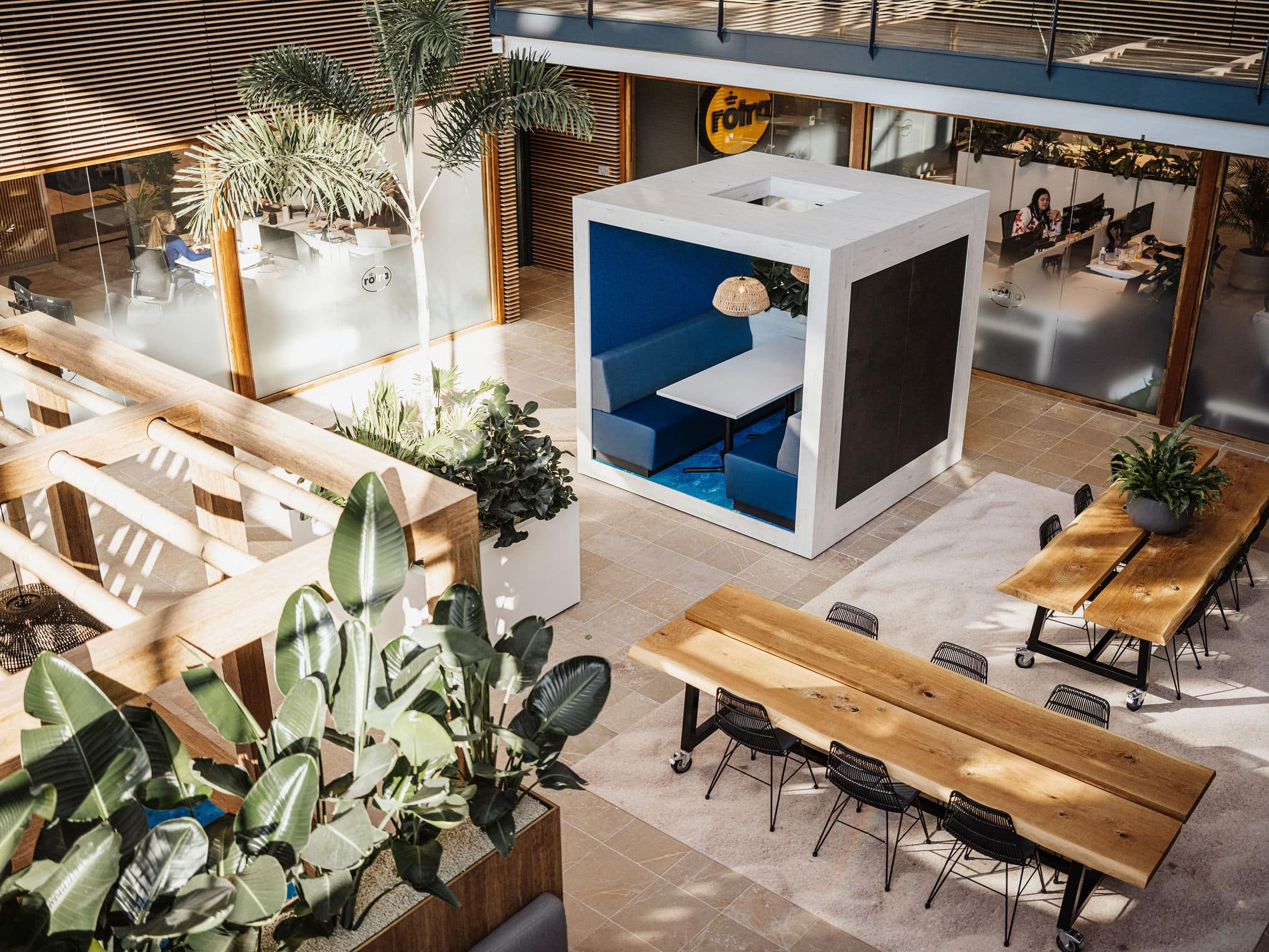 Voor Next Real Estate ontwierp en realiseerde Maasdam het atrium van het Poortugate-gebouw in Poortugaal. De ruimte is getransformeerd tot een centrale ontmoetingsplek voor huurders en bezoekers.