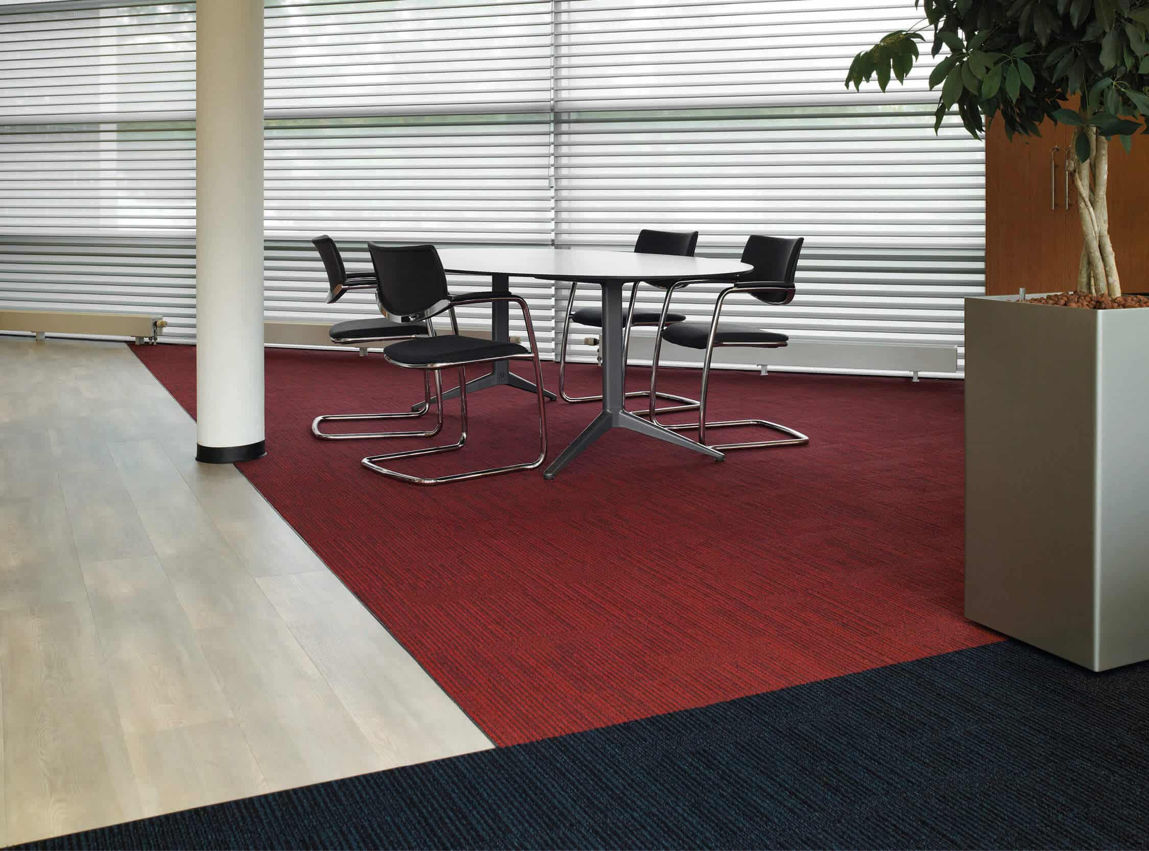 Een omvangrijk eisenpakket had BDO Hengelo niet. Wel een open vraag voor Maasdam: “Eigenlijk willen we hier blijven zitten. Hoe kunnen we dan meer doen met minder vierkante meters? En hoe kunnen we hybride werken hierin vormgeven?” De huisstijl van BDO gaf enige houvast. Het kenmerkende rood en blauw vormden de basis voor een knap staaltje projectinrichting.