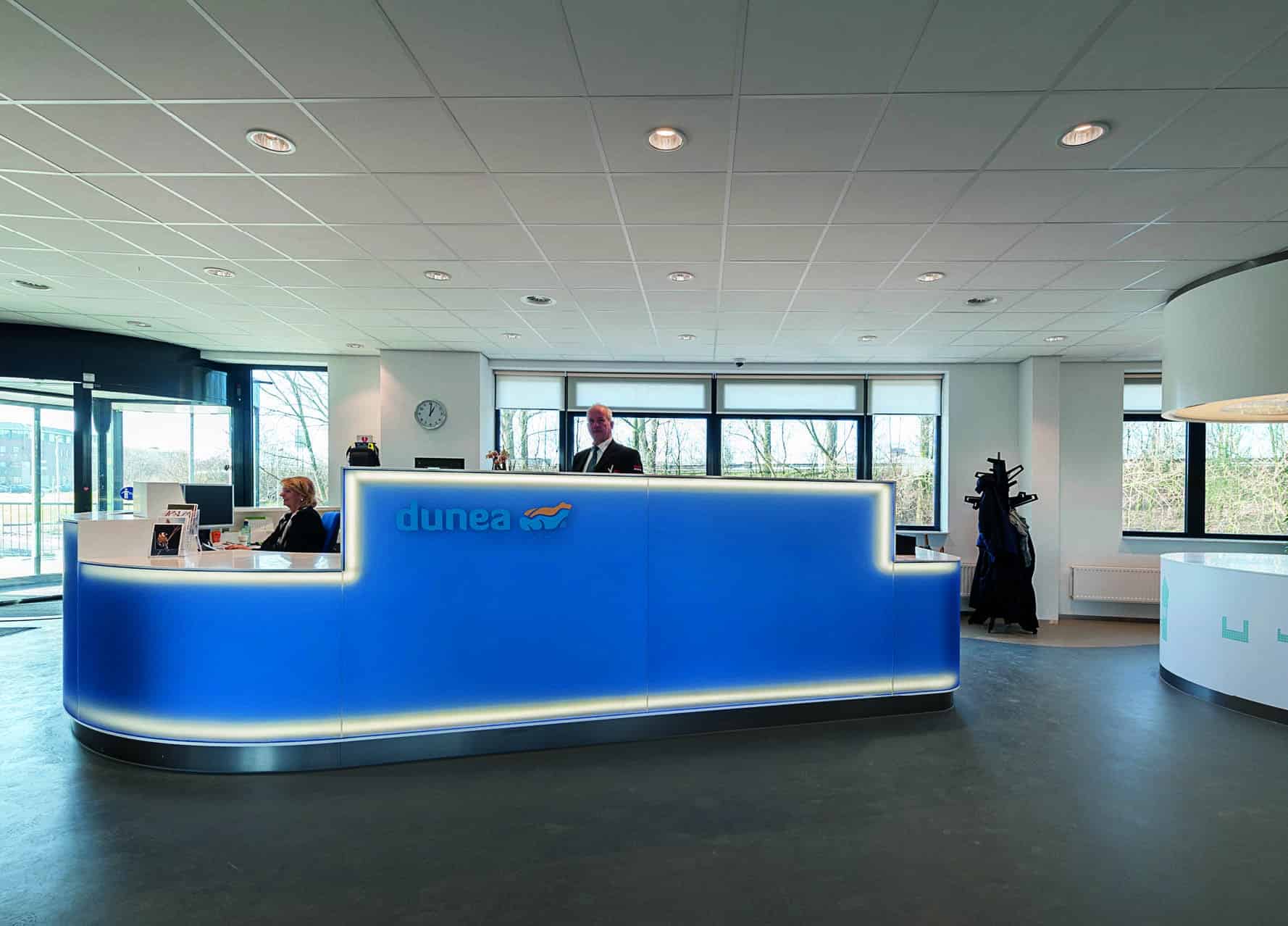 Waterbedrijf Dunea in Zoetermeer wilde van twee locaties naar één. Die samenvoeging vond plaats op een van de bestaande locaties: een bijzonder, halfrond pand aan het Plein van de Verenigde Naties in Zoetermeer. Heembouw voerde het project uit voor eigenaar Syntrus Achmea. Maasdam voorzag de vijf verdiepingen van onder meer systeemwanden, kwalitatieve vloeren en waterbars. Een technisch uitdagende klus waarin veel disciplines succesvol samenkwamen.