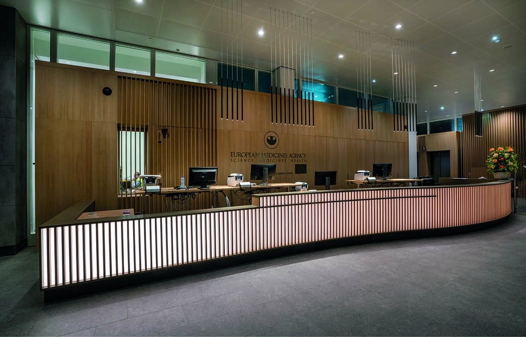 Voor het nieuwe kantoor van het Europees Geneesmiddelenagentschap (EMA) in Amsterdam verzorgden we samen met de VLAQ Groep de volledige vloerafwerking. De opdracht kwam voort uit een unieke situatie: de verhuizing van EMA van Londen naar Amsterdam als gevolg van de Brexit. Nederland deed de belofte dat er op 15 november 2019 een compleet nieuw gebouw zou staan. Die belofte is waargemaakt — met 1.300 werkplekken, 19 verdiepingen en een totaaloppervlak van 39.000 m².