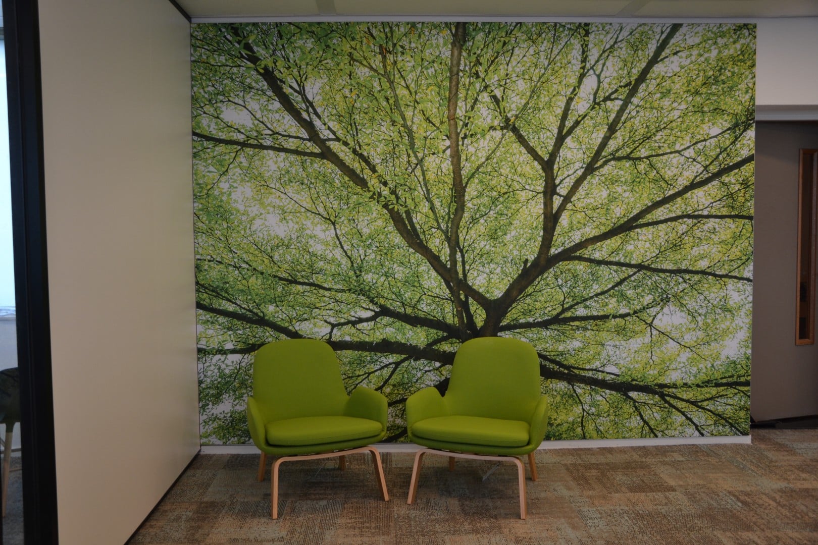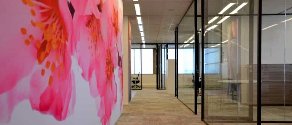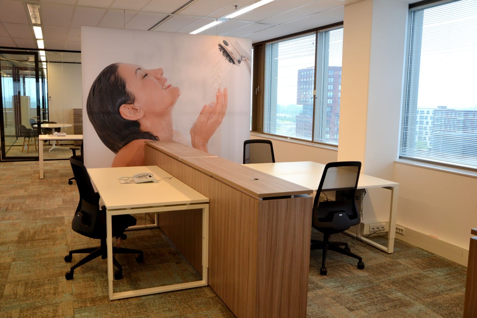 Na anderhalve maand voorbereiding realiseerden we het totaalproject in slechts zeven weken. Van schilderwerk en akoestisch behang tot systeem- en glaswanden, raamdecoratie, vloeren, meubilair en multimediamiddelen: alles werd gerealiseerd volgens planning. Op de dag van oplevering hing de verlichting, waren de ruimtes ingericht en konden zo’n 25 medewerkers direct aan de slag.