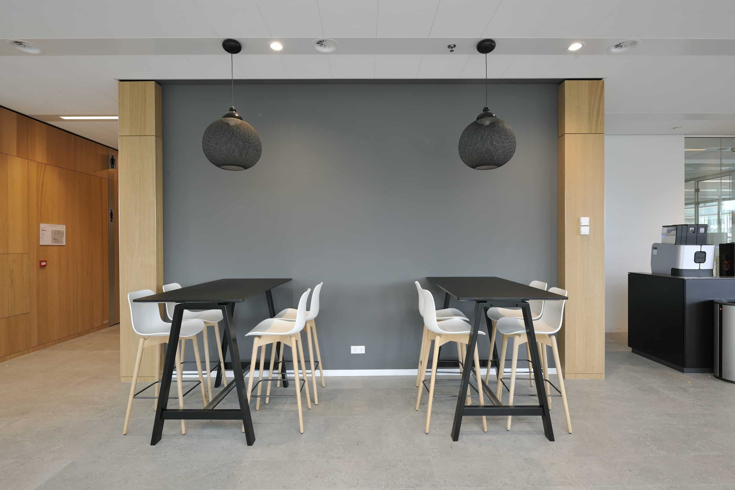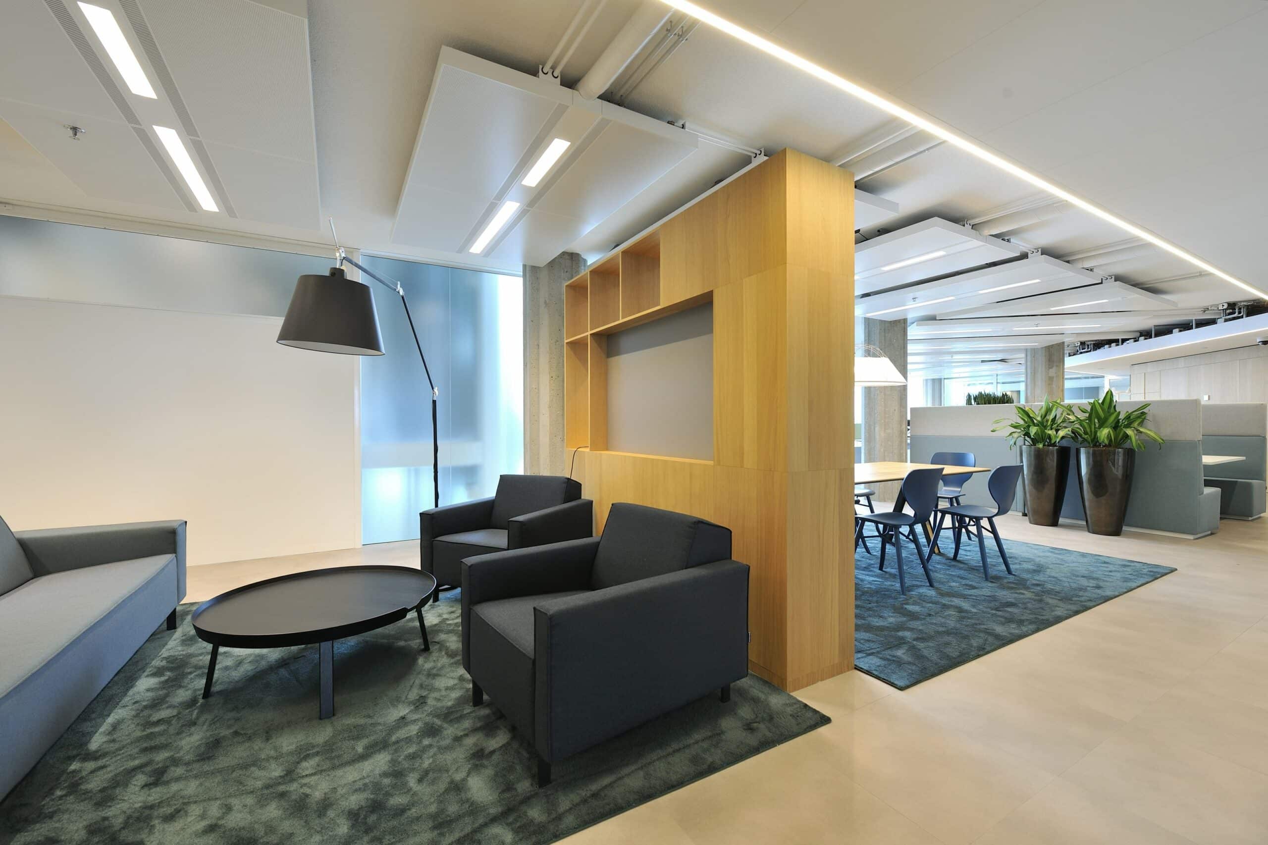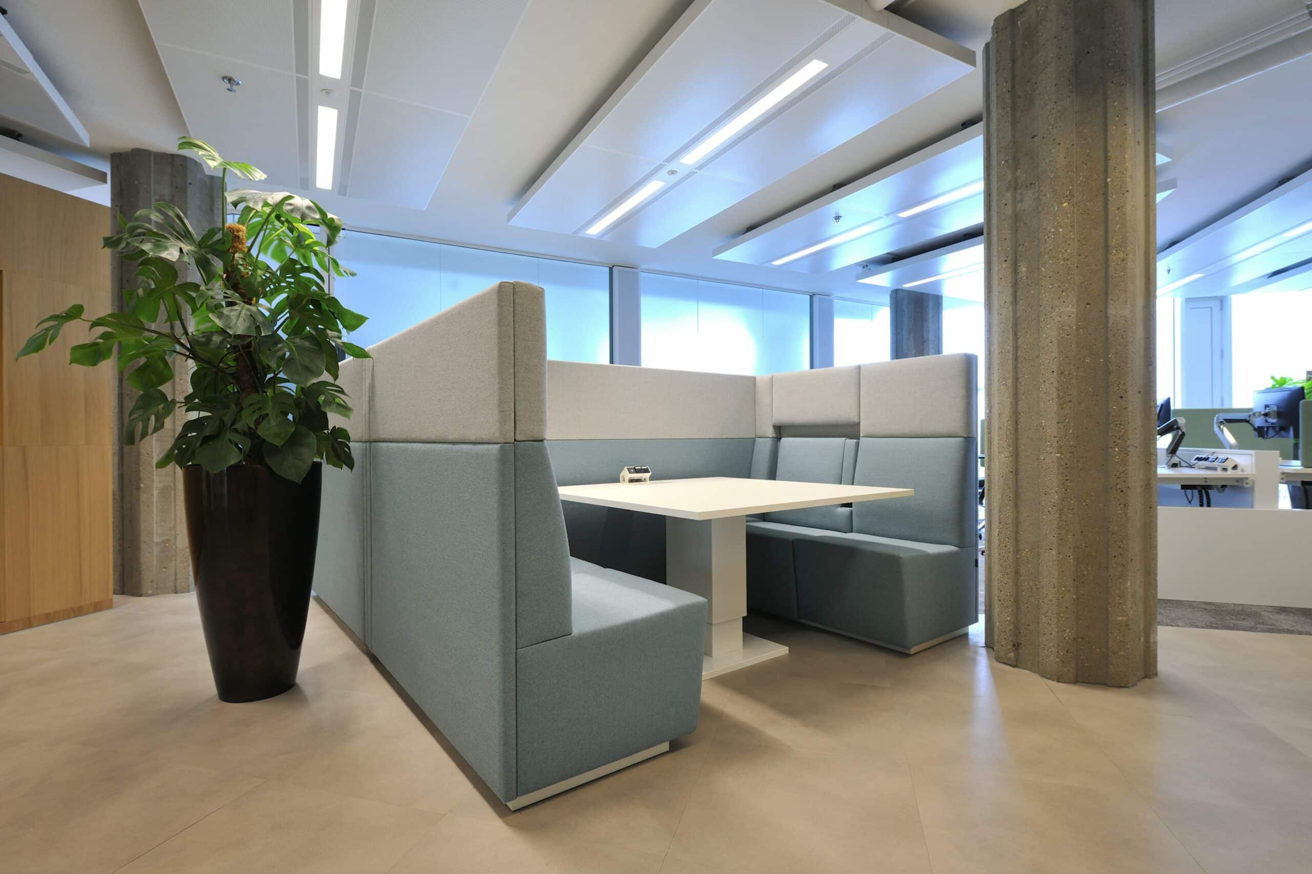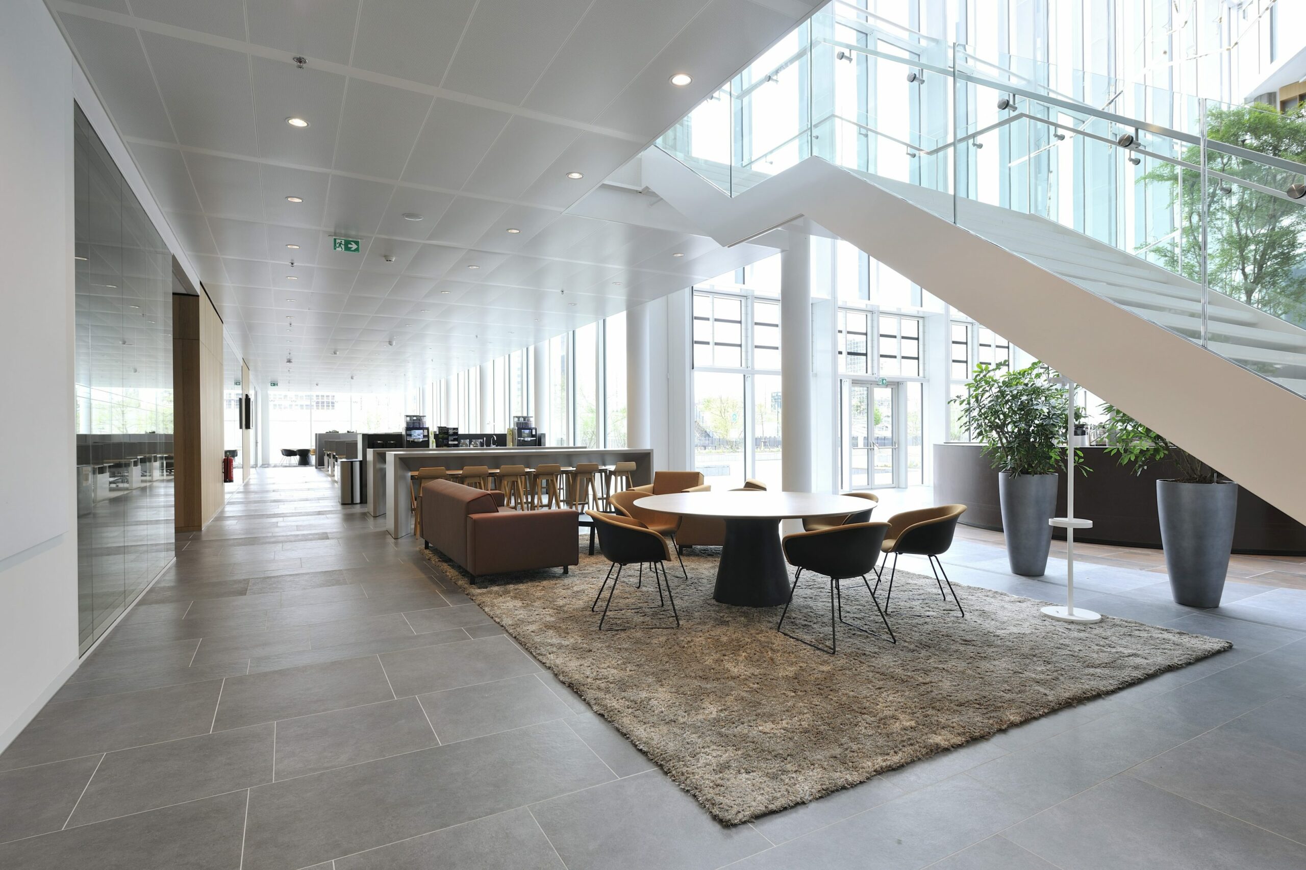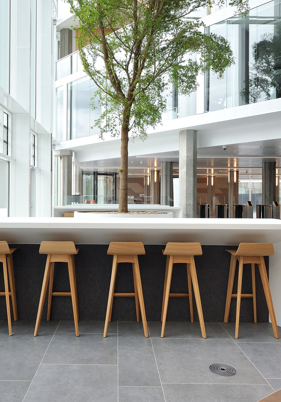 Van bureaus en vergadertafels tot verlichting, soft seating en restaurantinrichting: we verzorgden het volledige projectmeubilair. In het ontwerp van Fokkema & Partners kwamen strakke, functionele werkplekken samen met sfeervolle, uitnodigende algemene ruimtes. De combinatie van natuurlijke materialen en warme kleurcombinaties gaf het gebouw een verrassend huiselijke uitstraling.